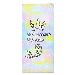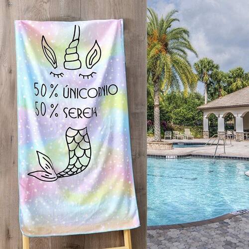 A Toalha de Praia Aveludada é confeccionada em 100% Poliéster, toque macio, confortável e com grande absorvição.