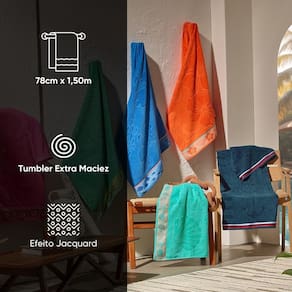 Ficha Técnica: - Nome do Produto: Toalhão de Praia Beach - Tamanho: 78cm x 1,50m; - Gramatura: 400g/m²; - Material: 100% Algodão (Exceto Barra Decorativa); - Peso Líquido: 0,468 kg; - Peso Bruto: 0,55 kg; - Dimensão Embalagem: 5cm x 25cm x 36cm; - Tumbler Extra Maciez; - Toque Aveludado;