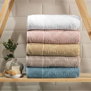 Da linha de Toalhas Day by Day Altenburg, o modelo Istambul está disponível nos tamanhos rosto, banho e um jogo de 5 peças, com 5 opções: branco, rosa, bege, cinza e azul.