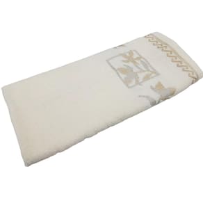 A toalha Florence conta com um tamanho generoso, corpo felpudo em 100% algodão de massa pura e fibras longas e fio convencional de dupla torção proporcionando uma super maciez e ótima absorção. Seu barrado em poliéster é metalizado e em dois tons, bege e prata, um desenho suave e elegante.