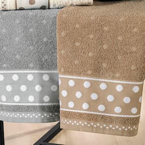 A toalha de rosto Petit Poá é lindamente trabalhada em tecido 100% algodão, a gramatura 450gm2 conta com um padrão de desenho nas toalhas e um perfeito acabamento. Disponível em lindas cores que deixarão seu banheiro cheio de Estilo . Você vai se apaixonar. Produto composto por: 01 Toalha de Rosto 80cm x 50cm Composição: Tecido: 100% Algodão Gramatura 450g/M