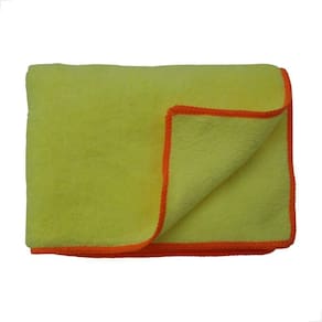 A Toalha de Microfibra JS 40x60 Amarela com Costura Laranja é uma opção resistente, macia e altamente absorvente, ideal para limpeza, polimento e acabamento sem riscar superfícies