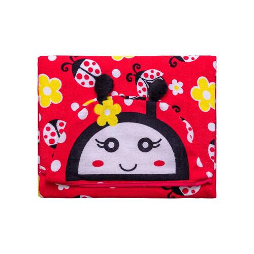 Toalha Estampada Baby Joy Com Capuz E Forro 100% Algodão Estampas Divertidas - Cor: Joaninha
