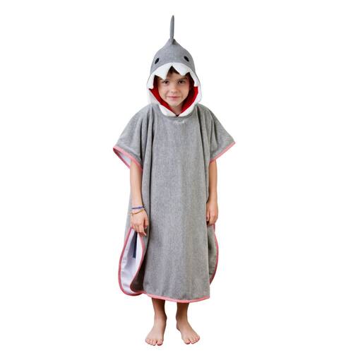 Agora sair da piscina, do mar e do banho vai ser superdivertido e bem quentinho com essa toalha com capuz de tubarão! Ela é fechada na frente do tipo "vestir" para os pequenos ficarem bem protegidos!