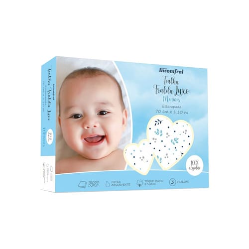 Características: - Contém 03 Unidades - Medidas Aproximadas: 70 cm x 1,10 m - Tecido: Fralda Luxo 100% Algodão - Marca: Incomfral