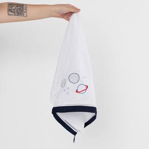 Ela possui um bordado divertido e é muito prática em sua utilização, lavagem e na hora de guardar, além de ser macia, o que faz com que seja suave na pele do neném, trazendo o conforto necessário logo após o banho.