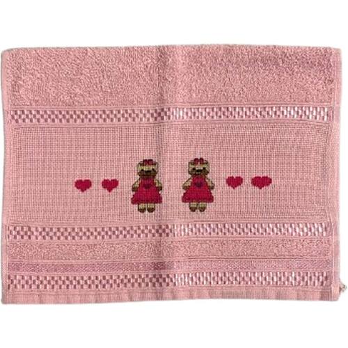 Toalha Lavabo Ponto Cruz com Borbado da Vovó Alice Coração Rosa -