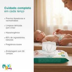- Conteúdo da Embalagem: 1 Toalha Lenço Umedecido com 50un Maxi Baby