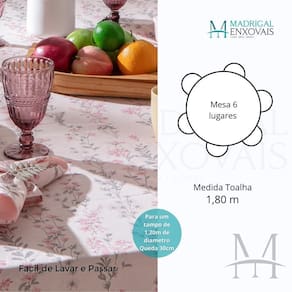Contém: 01 peça 01 toalha de mesa redonda 1,80m Estampa/cor: quatro estações/rosa