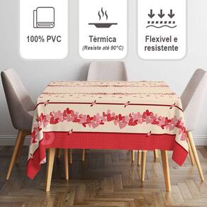 LIMPA FÁCIL, MAIS PRATICIDADE PARA O DIA A DIA! Feita com material 100% PVC térmico, essa toalha é muito fácil de limpar tornando-a prática para o dia a dia. Moderna e bonita, combina com qualquer estilo e espaço. VANTAGENS:- Flexível e resistente;- Prática;- Térmica;- Impermeável;- Protege a mesa;- Fácil de limpar: Basta passar um pano úmido com sabão neutro.- Combina com qualquer ambiente. DIMENSÕES- Largura: 1,40m- Comprimento: 1,40m- Espessura: 1mm- Sugestão: Mesa com 4 lugares ACONSELHAMOS QUE TIRE AS MEDIDAS DA SUA MESA PARA ESCOLHER O TAMANHO QUE MELHOR SE ADEQUA A ELA. CARACTERÍSTICAS:- Material: 100% PVC- Resiste a até 90ºC RESTRIÇÃO:A única restrição para qualquer toalha térmica são assadeiras e panelas com óleo quente, pois o óleo atinge temperaturas muito mais altas. Somos fabricante, por isso o melhor preço para esse produto.Um produto Idealiza Comércio de Utilidades.