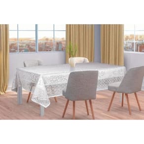 Toalha Mesa Renda + Cortina Cascata Roseiral - Poliéster - Branco