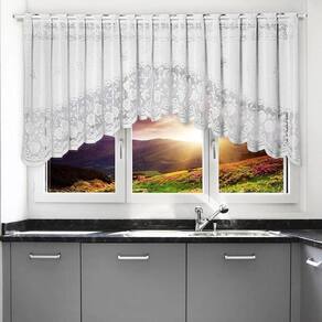 Acompanhando a toalha de mesa, você também receberá a cortina cascata roseiral branca, que possui 3,00 m de largura por 1,00 m de altura. Para instalar a cortina, recomenda-se o uso de um varão com tamanho de 2,00 m. Vale ressaltar que o varão não está incluso no produto.