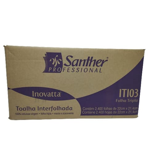 Toalha de papel inovatta folha tripla interfolha 2400 folhas 12x200fl Papel toalha para mãos interfolhada folha tripla inovatta Iti 03 Característica do produto este produto é produzido com 100% fibras virgens celulose não transgênicas. Possui excelente alvura e maciez, bem como boas propriedades de resistência ao estado úmido e exclusiva tecnologia que deixa o papel muito mais macio e mais absorvente. Não causa irritações dérmicas. Código iti 03 - inovatta toalha interfolhada tripla Cor branco gramatura 42 - 46g/m Unidade de consumo uc pacote com 200 folhas tripla Largura da folha 220 mm comprimento da folha 214 mm Validade indeterminado - Produto não perecível Tipo de embalagem pacote plástico totalmente fechado Unidade de despacho ud cx com 12 pacotes de 200 folhas triplas 21,6cm x 22cm Embalagem de embarque: caixa de papelão Recomendação armazenar no pacote . Não armazene este produto em ambientes úmidos, com fortes odores próximo a químicos e/ou não seguros. Cuidados especiais - o produto deve ser descartado em latas de lixo.