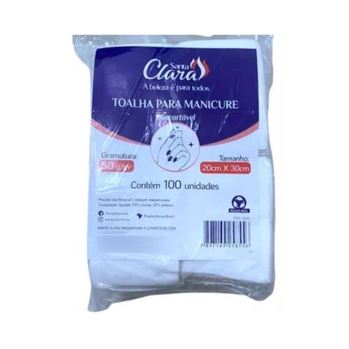 100 UNIDADES - L: 20 cm - C: 30 cm SPUNTEC 70% VISCOSE, 30% POLIÉSTER Gramatura: 50g/m A Toalha Descartável santa clara é a solução ideal para quem busca praticidade, higiene e economia em diversas situações. Com um pacote contendo 100 unidades, estas toalhas são perfeitas para e doméstico, oferecendo uma alternativa eficiente e descartável às toalhas de tecido tradicionais. Características Principais: Material de Qualidade: Fabricadas em Spuntec, uma combinação de 70% Viscose e 30% Poliéster, estas toalhas oferecem excelente absorção e resistência, proporcionando uma experiência de uso agradável e eficaz. Higiênicas e Seguras: Sendo descartáveis, eliminam o risco de contaminação cruzada, garantindo um ambiente mais limpo e seguro para seus clientes, pacientes ou para o seu dia a dia. Tamanho Ideal: Com dimensões de 20 cm de largura por 30 cm de comprimento, são perfeitas para diversas aplicações, como secar as mãos, limpar superfícies pequenas, remover maquiagem, e muito mais. Gramatura Otimizada: A gramatura de 50g/m oferece um equilíbrio perfeito entre absorção e resistência, tornando-as eficientes sem serem excessivamente grossas. Econômicas: O pacote com 100 unidades garante um excelente custo-benefício, ideal para estabelecimentos com alto fluxo de uso ou para quem busca ter sempre à mão uma solução prática e descartável. Versátil: Adequadas para uma ampla gama de aplicações, incluindo salões de beleza, clínicas de estética, consultórios médicos e odontológicos, academias, spas, e também para uso doméstico em viagens, eventos e no dia a dia. Benefícios: Máxima Higiene: Uso único, prevenindo a proliferação de bactérias e fungos. Praticidade: Não necessitam de lavagem, secagem ou armazenamento como toalhas de tecido. Economia de Tempo e Recursos: Reduz custos com água, energia e produtos de limpeza. Conveniência: Fáceis de transportar e armazenar. Suavidade: O material Spuntec oferece um toque suave na pele. Ideal para: Salões de beleza e barbearias para serviços de manicure, pedicure, limpeza facial, etc. Clínicas de estética e spas para diversos procedimentos Consultórios médicos e odontológicos para higiene de pacientes e profissionais Academias e clubes para uso pós-treino Uso doméstico viagens, higiene pessoal, limpeza rápida