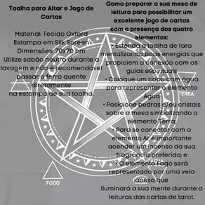 A Toalha Tecido Jogo de Cartas Pentagrama da Bialluz são ótimas para te auxiliar durante o jogo de cartas, por ser um elemento que proporciona alta elevação enérgica. Você também pode usar para decorar seu altar, com certeza ficara ainda mais lindo e com muita energia positiva. Nossa toalha possui altíssima qualidade na impressão com pontos de brilho e é confeccionada em tecido oxford que não amassa e tem longa durabilidade.