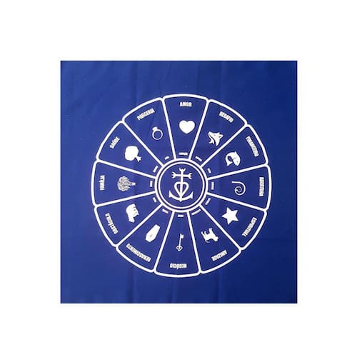 Toalha Roda Cigana para Tarô Cigano Místico Azul Branco 70CM