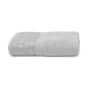 Toalha felpuda com aplicação de Renda Bordada. A delicadeza da renda aplicada na toalha confere ao produto um visual requintado.