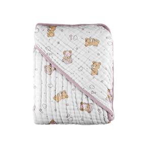 Toalha Soft para Bebê 70 cm x 70 cm Pixuxu - Urso Soninho Rosa