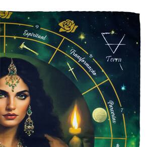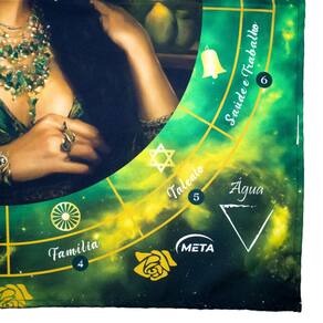 A Toalha Tarot Tecido Jogo Cartas Cigana Esmeralda da Bialluz, é ótima para te auxiliar durante o jogo de cartas, por ser um elemento que proporciona alta elevação enérgica. Você também pode usar para decorar seu altar, com certeza ficara ainda mais lindo e com muita energia positiva. Nossa toalha possui altíssima qualidade na impressão com pontos de brilho e é confeccionada em tecido oxford que não amassa e tem longa durabilidade.