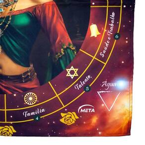 A Toalha Tarot Tecido Jogo Cartas Cigana do Oriente da Bialluz, é ótima para te auxiliar durante o jogo de cartas, por ser um elemento que proporciona alta elevação enérgica. Você também pode usar para decorar seu altar, com certeza ficara ainda mais lindo e com muita energia positiva. Nossa toalha possui altíssima qualidade na impressão com pontos de brilho e é confeccionada em tecido oxford que não amassa e tem longa durabilidade.