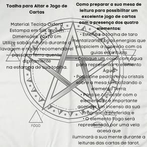 A Toalha Tecido Jogo de Cartas Pentagrama da Bialluz é ótima para te auxiliar durante o jogo de cartas, por ser um elemento que proporciona alta elevação enérgica. Você também pode usar para decorar seu altar, com certeza ficara ainda mais lindo e com muita energia positiva. Nossa toalha possui altíssima qualidade na impressão com pontos de brilho e é confeccionada em tecido oxford que não amassa e tem longa durabilidade.