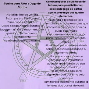 A Toalha Tecido Jogo de Cartas Pentagrama da Bialluz é ótima para te auxiliar durante o jogo de cartas, por ser um elemento que proporciona alta elevação enérgica. Você também pode usar para decorar seu altar, com certeza ficara ainda mais lindo e com muita energia positiva. Nossa toalha possui altíssima qualidade na impressão com pontos de brilho e é confeccionada em tecido oxford que não amassa e tem longa durabilidade.