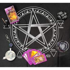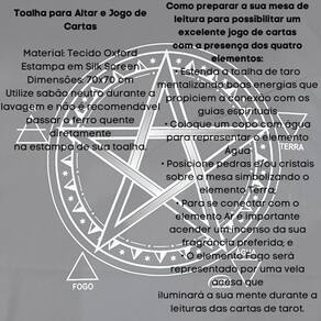 A Toalha Tecido Jogo de Cartas Pentagrama da Bialluz é ótima para te auxiliar durante o jogo de cartas, por ser um elemento que proporciona alta elevação enérgica. Você também pode usar para decorar seu altar, com certeza ficara ainda mais lindo e com muita energia positiva. Nossa toalha possui altíssima qualidade na impressão com pontos de brilho e é confeccionada em tecido oxford que não amassa e tem longa durabilidade.