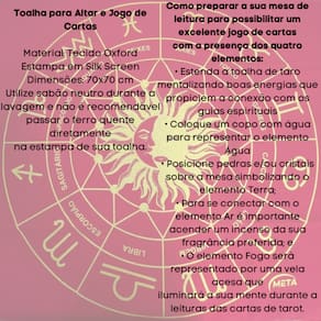 A Toalha Zodíaco Jogos Vermelha com Dourado da Bialluz, é ótima para te auxiuliar durante o jogo de cartas, por ser um elemento que proporciona alta elevação enérgica. Você também pode usar para decorar seu altar, com certeza ficara ainda mais lindo e com muita energia positiva. Nossa toalha possui altíssima qualidade na impressão com pontos de brilho e é confeccionada em tecido oxford que não amassa e tem longa durabilidade.