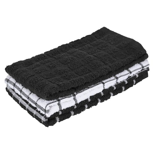 Panos de cozinha Ritz Premium 100% algodão Terry Check — altamente absorventes, supermacios, duradouros, 25"x15", pacote com 3, pretos