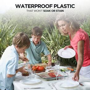 - Ótimas para todas as ocasiões: estas toalhas de mesa descartáveis de plástico branco vêm em um conjunto de 12 peças e são ideais para qualquer uso diário ou evento especial. De jantares a aniversários, festas de banho, artesanato ou até mesmo churrasco, nossa toalha de mesa descartável está aqui para você.