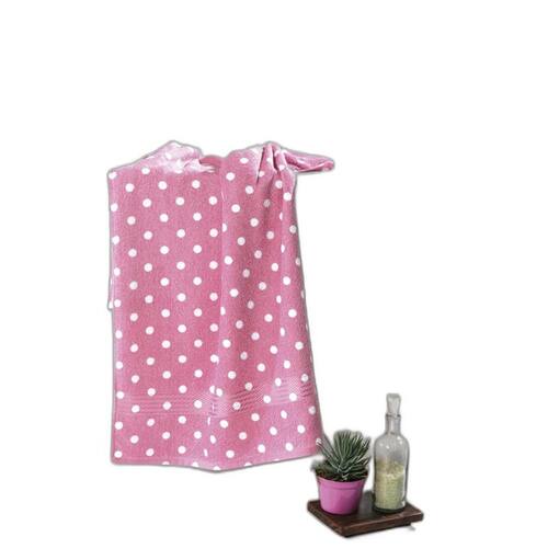 Toalha felpuda estampada em algodão, com detalhes de viscose, macia e absorvente. Contém : tamanho da banho : 70 cm x 1,40m 400 gramas Suas belas estampas, deixaram seu ambiente ainda mais charmoso e elegante. cor: Rosa com bolinhas brancas . Instruções de lavagem: Não Alvejar Marca: Não Informado