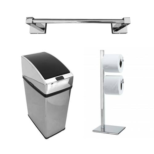 O Kit Toalheiro 30cm, Lixeira Automática 3L e Papeleira Dupla Inox Polido é um conjunto essencial para o seu banheiro ou lavado. Ideal para quem busca qualidade e praticidade e um design moderno no dia a dia.