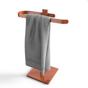 Estabilidade Total: Base pesada com revestimento em EVA antiderrapante, garantindo firmeza e evitando tombamentos mesmo durante o uso. Capacidade Inteligente: Suporte para 1 toalha de rosto, mantendo seu banheiro sempre organizado e funcional. Materiais Premium: Produzido em aço inox e alumínio de alta qualidade, oferecendo resistência à umidade e durabilidade superior. Acabamento Rose Gold: Um toque contemporâneo que agrega charme e sofisticação ao ambiente. Fácil de Usar: Não requer instalação, é só posicionar onde quiser e pronto
