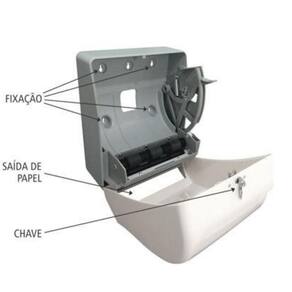 Dispenser toalheiro Luna papel toalha Toalheiro de papel toalha de bobina com acionamento por alavanca. Em plastico ABS. Com visor e trava. ESPECIFICAÇÕES TÉCNICAS: Capacidade: rolo 20cm x 200m Matéria Prima: Plastico ABS Linha de produtos: Branca ou LUNA Acionamento: Manual por alavanca Dimensões: A: 33cm L: 27cm C: 23cm Cor: branco Peso: 1,680 Kg ITENS INCLUSOS: 01 Dispenser 01 chave de aço 04 parafusos 04 buchas para fixação