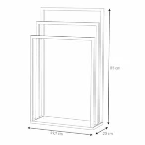 O Suporte Toalheiro é um produto prático e elegante para o seu banheiro. Ele tem capacidade para três toalhas e é feito de aço resistente com pintura epóxi, que protege contra ferrugem e corrosão. Este suporte é muito prático, ideal para deixar no chão do banheiro dispensando a necessidade de furar a parede. Ele tem um design moderno e discreto que combina com qualquer decoração. Ah, e por falar em design ele tem base em madeira de peroba rosa que deixa ainda mais lindo. O Porta toalhas é uma ótima opção para quem busca qualidade e durabilidade em um produto essencial para o dia a dia.