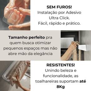 A instalação do Toalheiro Eleve é simples e prática através de um adesivo forte e resistente que se adapta a diversos tipos de revestimento, seja parede, papel de parede, porcelanatos, madeiras entre outros.