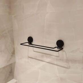 Toalheiro de parede toalha de banho ventosa banheiro schmitt Cor: preto Porta toalha para banheiro com ventosa toalheiro faciliti cromado rosto e banho sem furos - schmitt O suporte para toalha com ventosa da schmitt possui acabamento em alto brilho, é perfeito para dar um toque de charme e requinte ao seu banheiro. Com design compacto e sofisticado permite que se adapte facilmente à decoração já existente no ambiente. Este toalheiro duplo ventosa possui fixação por sucção, dispensando o uso de ferramentas para instalação, evitando furos na parede e sujeira, podendo ser trocado de lugar quando desejar. O porta toalha faciliti é de ótima qualidade e garante alta resistência à corrosão. Este suporte para toalha de rosto ou de banho tem design sofisticado, além de ocupar pouco espaço em sua parede, mantendo seu banheiro organizado. Com o toalheiro de banho faciliti com ventosa você consegue otimizar espaço e organizar o banheiro. Nele você pode utilizar toalhas de banho ou de rosto. Sua instalação dispensa o uso de ferramentas evirando furos e sujeira. Dimensões: 45cm c x 13cm l x 9cm a ;Peso: 446gCor predominante: cromado ou pretoComprimento da haste menor: 30cm;Comprimento da haste maior: 44cm;Diâmetro da ventosa: 7cmCapacidade: 1 toalha de rosto e 1 toalha de banho;Material: abs, borracha e aço cromado. Limpeza e cuidados:- fixação da ventosa: necessária superfícies lisas, brilhosas, planas, polidas, não porosas, assim como vidro ou porcelanato polido sem texturas ou ranhuras;- limpar com pano levemente umedecido em água e sabão neutro, seguido de pano seco;- evitar batidas e contato com objetos cortantes. Instalação da ventosa:- realizar a limpeza da ventosa e da superfície de aplicação com pano úmido. As superfícies devem estar secas e livres de poeira, resíduos e oleosidade.- gire a tampa da ventosa no sentido anti-horário até desrosquear a ventosa por inteiro.- posicione o produto no local onde será instalado, aperte firmemente o centro da tampa da ventosa contra a superfície.- gire no sentido horário a tampa, apertando até que a peça esteja fixada na superfície.