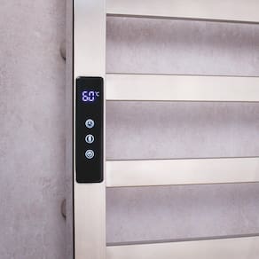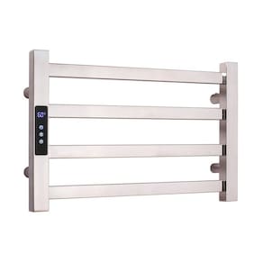 Especificações Técnicas Material: Aço Inox Display: Digital Com Timer Para Desligar na Hora Desejada Timer: De 1 até 9 Horas Temperatura de Aquecimento: De 30 ate 70 Graus Potência: 47W Largura: 45 Cm Altura: 30 Cm Largura Das Barras Aquecidas: 2,5 Cm Distancia da parece: 5 Cm Forma de Instalação: Buchas e Parafusos Marca: Não Informado