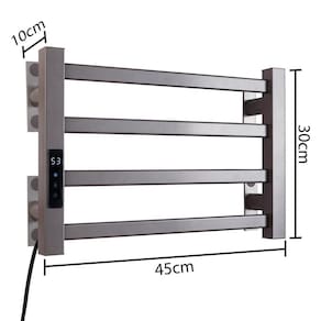 -com fio de aquecimento de fibra de carbono, este toalheiro oferece usma distribuição uniforme de calor, garantindo que suas toalhas estejam sempre quentes e Secas. -O display digital permite que você ajuste a temperatura de forma fácil e precisa, além de oferecer a praticidade da temperatura cronometrada, para que suas toalhas estejam sempre na temperatura ideal no momento em que você mais precisa. -com classificação IPX4, este toalheiro é resistente a água e umidade, proporcionando segurança e durabilidade. -além disso, a tecnologia antibacteriana e de remoção de ácaros garante que suas toalhas estejam sempre limpas e livres de agentes prejudiciais à saúde, oferecendo mais tranquilidade para você e sua família. -O tubo de alumínio espacial de alta qualidade, com propriedades anticorrosão e antiferrugem, assegura a durabilidade e a resistência do toalheiro ao longo do tempo, mantendo sua beleza e eficiência por muito mais tempo. Chega de se enxugar com toalhas frias e úmidas Transforme o seu banheiro em um verdadeiro spa com o toalheiro aquecido termo elétrico da Fino Inox. Experimente o conforto e a elegância que só a Fino Inox pode oferecer. Escolha Fino Inox experimente e apaixone-se ATENÇÃO: Só temos toalheiros com a saída do fio do lado esquerdo. Especificações Técnicas Display: Digital Largura: 45 Cm Altura: 30 Cm Distancia da parece: 10 Cm Forma de Instalação: Buchas e Parafusos Marca: Não Informado Ean: 7898974756022