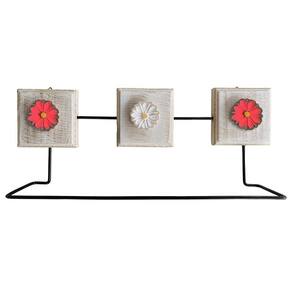 Toalheiro Ferro E Madeira Artesanal Flores Coloridas Cor Vermelho