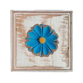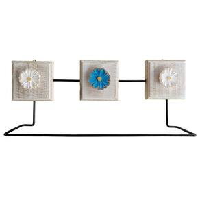 Toalheiro Ferro E Madeira Artesanal Flores Colorido Cor Azul