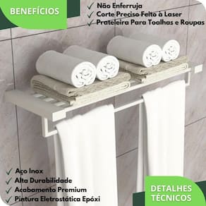 BENEFÍCIOS Acabamento Premium: Corte Realizado à Laser Material de Aço Inox Resistente a Água Não Enferruja e Não Sofre Oxidação Prateleira Para Toalhas e Roupas