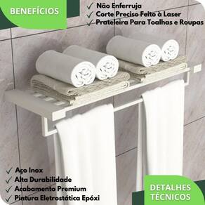 BENEFÍCIOS Acabamento Premium: Corte Realizado à Laser Material de Aço Inox Resistente a Água Não Enferruja e Não Sofre Oxidação Prateleira Para Toalhas e Roupas