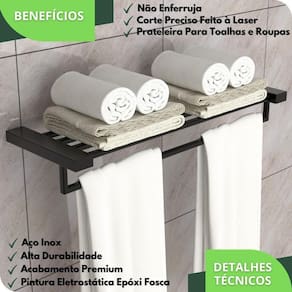 Toalheiro Hotel De Parede Porta Toalha Duplo Preto Master
