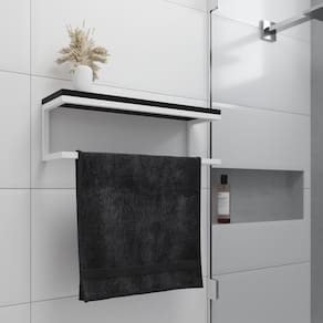 Toalheiro Para Banheiro Estilo Industrial Ita - Branco E Prateleira Preta - Cor: Preto