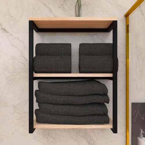 Este toalheiro de parede é uma excelente escolha para um banheiro, combinando a durabilidade da estrutura de metalon com pintura eletrostática e a aparência natural e sofisticada das prateleiras de madeira de pinus com acabamento em verniz. Ele oferece uma solução prática e elegante para organizar toalhas e outros itens, mantendo o espaço organizado e esteticamente agradável.