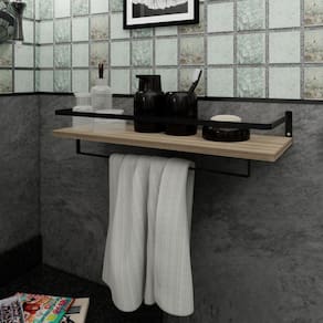 Toalheiro Prateleira Lavabo Toalha Banho Rosto Design Preto Prateleira Veronica MDF 20x60cm Preto