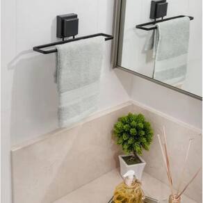 Toalheiro Rosto Ventosa Preto - Aço Carbono
