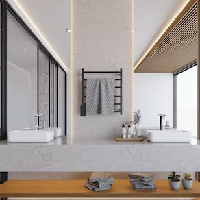 Toalheiro Térmico Blend Clean Preto Bivolt Bilateral Modelo: Blend Clean (cabo elétrico oculto) Dimensões: 53 x 59,2 x 8,5cm (larg. X alt. X prof.) Acabamento: Preto Fosco Nº barras: 06 barras retas redondas + verticais quadradas Potência: 65W Consumo: 0,065 KW/h Temperatura: 35ºC acima da temperatura ambiente Temperatura Máxima: 70 a 75ºC Tempo aquecimento: 15 minutos para chegar na temperatura ideal de uso Tensão: Bivolt Posição saída do cabo elétrico: Bilateral Posição da Tecla: Lado esquerdo embaixo Garantia de fábrica: 1 ano Marca: Thermo Benefícios: - Toalhas sempre quentes e secas. - Design elegante que valoriza o ambiente. - Fácil instalação e uso. - Bivolt, adaptável a diferentes instalações elétricas. - Baixo consumo de energia. Com o Toalheiro Térmico Blend Clean, você transforma seu banheiro em um espaço de conforto e bem-estar.