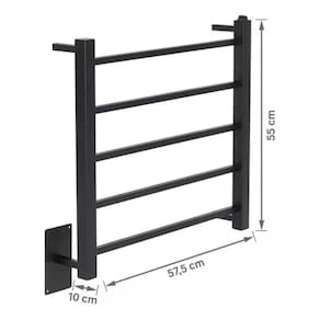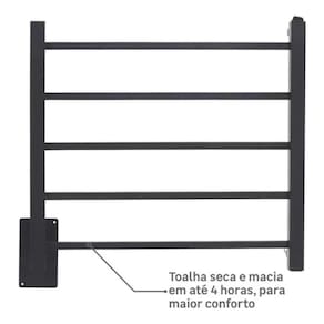 Tipo de Toalheiro Térmico DuploTensão Elétrica BivoltCor Preto foscoTonalidade PretoCapacidade de Toalhas 2 toalha(s)Altura 55,00 cmLargura 57,50 cmProfundidade 10,00 cmComprimento 10,00 cmDiâmetro 3,00 cmEspessura 1,00 mmDimensão 55x57,5x10 cmLocal Indicado ParedeLocal(is) Indicado(s) ParedeBenefícios Prático, seguro e fácil de instalar. Baixo consumo de energia com proteção contra ácaros, fungos e bactérias.CVB Oficial SimMaterial MetalTipo de Material Aço InoxAcompanha Fixação SimQuantidade de Peças de Fixação 24 peça(s)Tipo de Fixação OcultaTipo de Material da Fixação Inox e Nylon